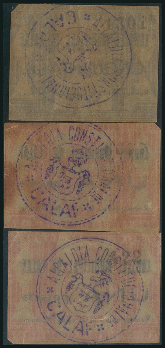 CALAF (BARCELONA). 50 Cents and 1 Peseta (text in upper and lower case). (1938ca). (González: 7258, 7259, 7260). Rare F.