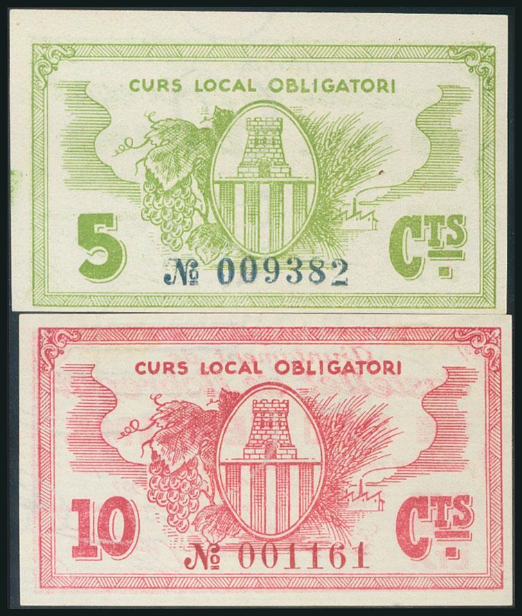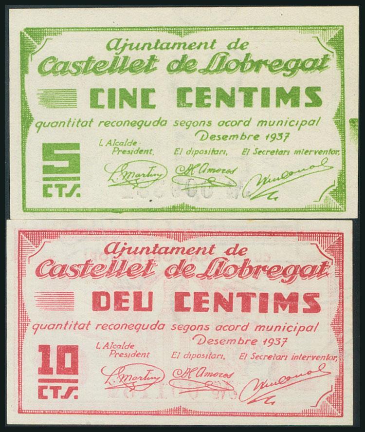 CASTELLET DE LLOBREGAT (BARCELONA). 5 Cents and 10 Cents. December 1937. (González: 7452/53). Complete series. AU.