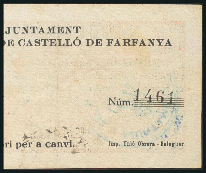 CASTELLO DE FARFANYA (LERIDA). 50 cents. March 17, 1937. Series B. (González: 7489). Very rare. F.