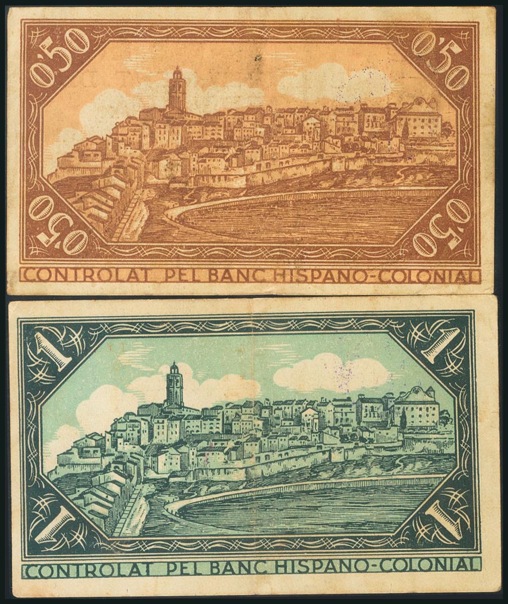 CERVERA (LERIDA). 50 Cents and 1 Peseta. April 1937. (González: 7556/57). Complete series. F/ VF