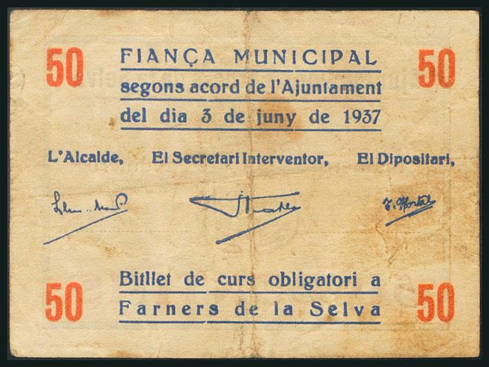 FARNERS DE LA SELVA (GERONA). 50 cents. June 3, 1937. (González: 7829). F.