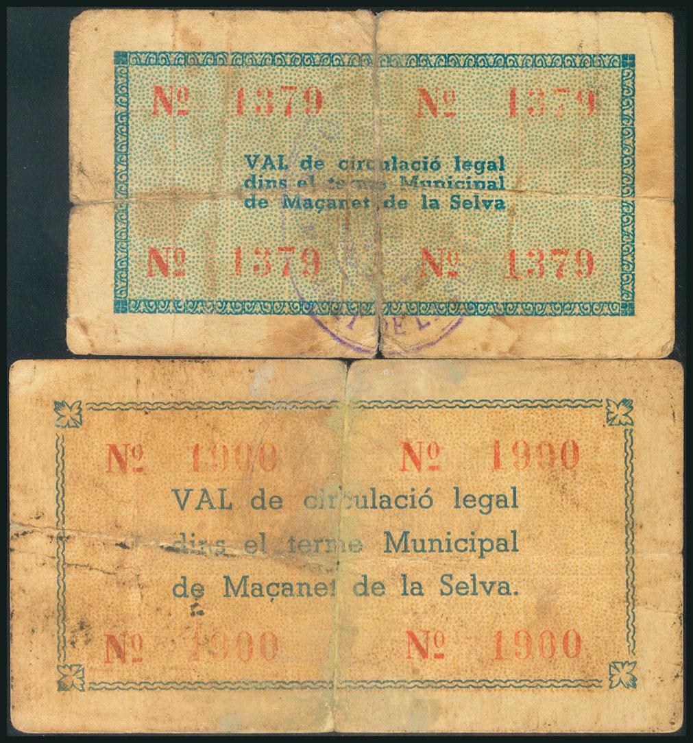 MACANET DE LA SELVA (GERONA). 50 Cents and 1 Peseta. May 19, 1937. (González: 8449/50). Rare complete series. VG.