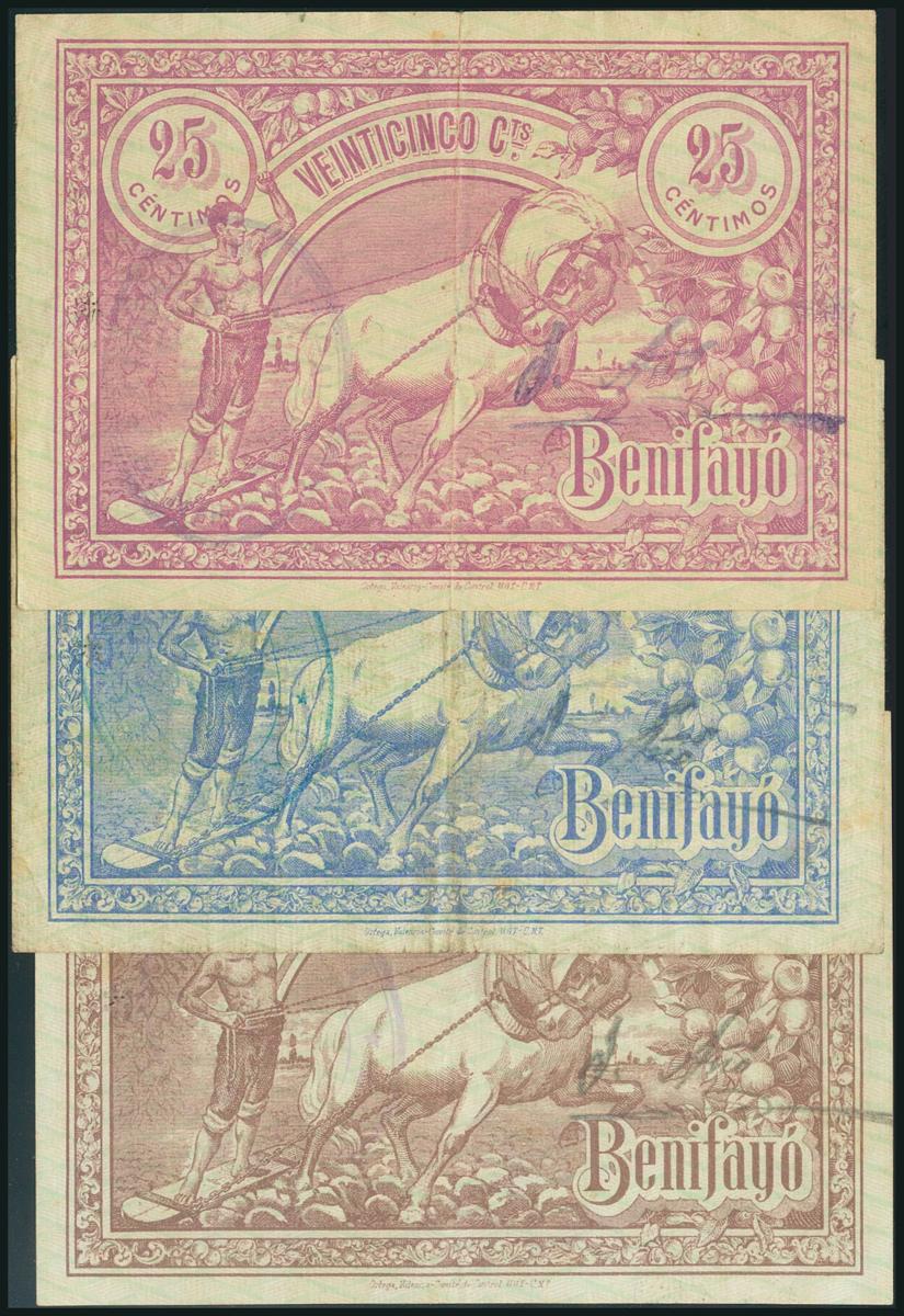 BENIFAYO (VALENCIA). 25 Cents, 50 Cents and 1 Peseta. September 9, 1936. (González: 1112, 1113, 1114). AU/ F.