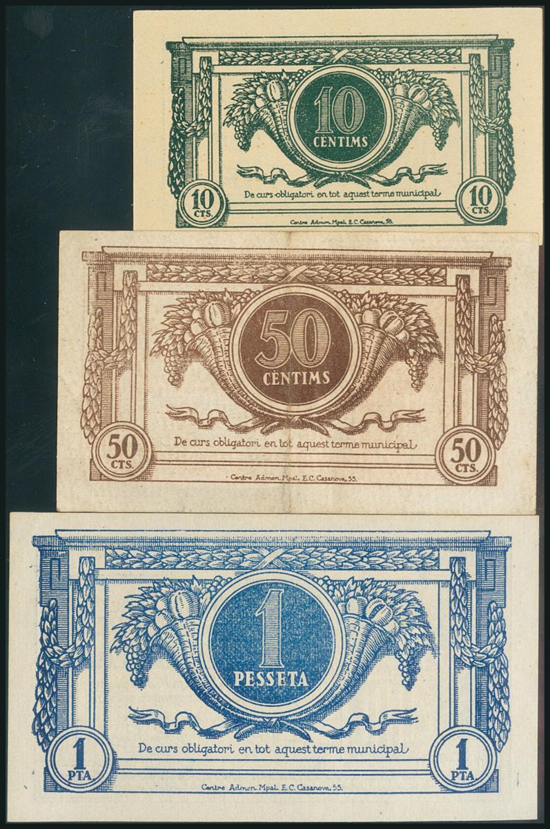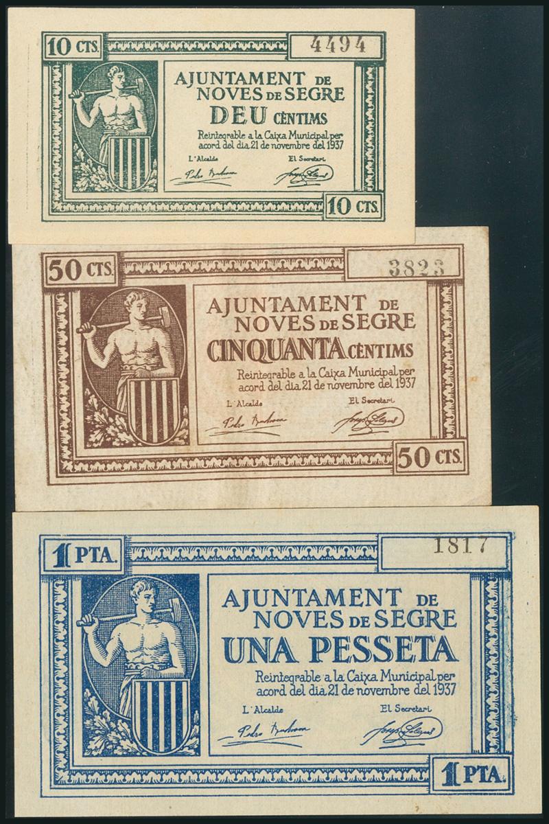 NOVES DE SEGRE (LERIDA). 10 Cents, 50 Cents and 1 Peseta. November 21, 1937. (González: 8896, 8898, 8899). Very rare. UNC/ AU.