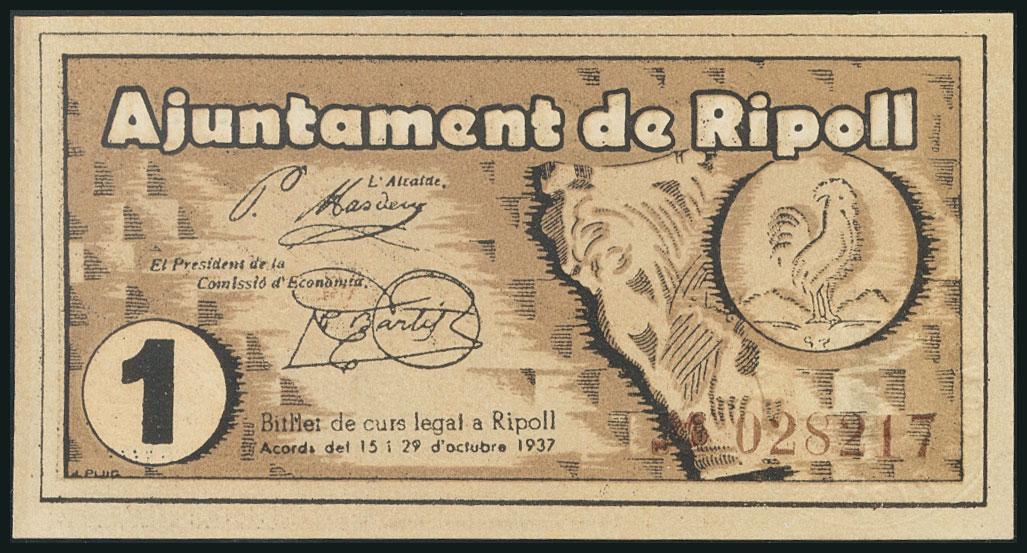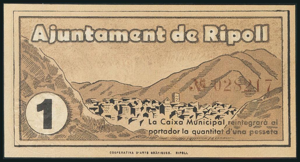 English RIPOLL (GERONA). 1 peseta. October 29, 1937. (González: 9649). UNC.