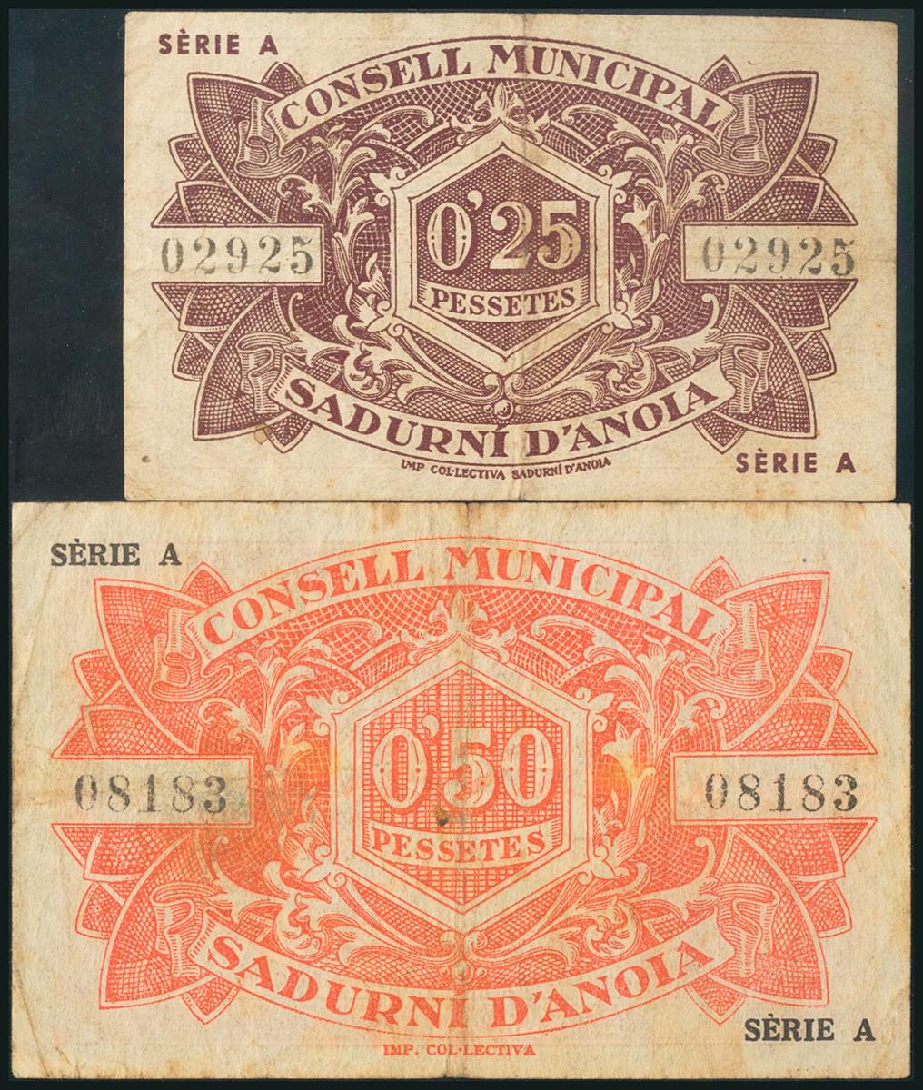 SADURNI DE ANOIA (BARCELONA). 25 Cents and 50 Cents. July 15, 1937. Series A, both. (González: 9804, 9805). F.