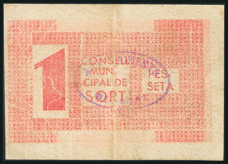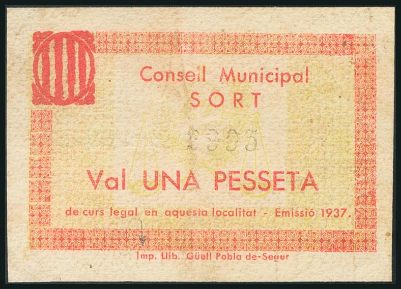 SORT (LERIDA). 1 peseta. 1937. (González: 10043). Rare. VF.