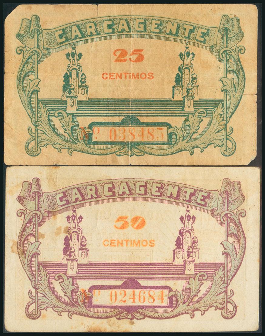 CARCAGENTE (VALENCIA). 25 Cents and 50 Cents. July 1937. (González: 1633, 1634). G/ VF.