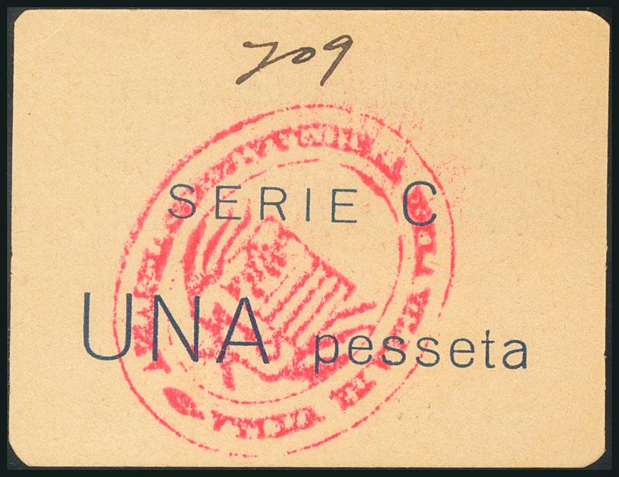 VIELLA (LERIDA). 1 peseta. (1938ca). Series C. (González: 10657). Very rare, especially in this quality. UNC.