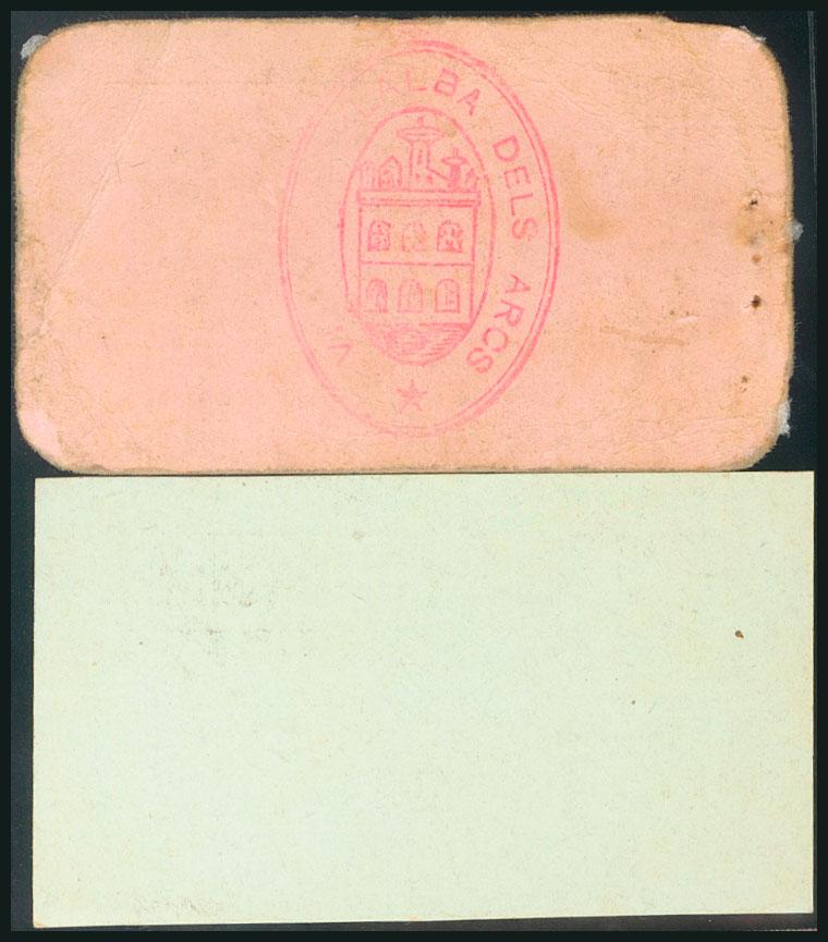 VILALBA DELS ARCS (TARRAGONA). 50 Cents and 1 Peseta. (1938ca). (González: 10740/41). Rare complete series. AU/ F.