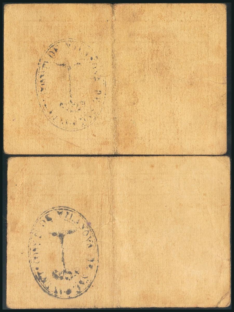 VILANOVA DE SAU (BARCELONA). 1 peseta. Correlative pair. (1937ca). (González: 10822). Rare. BC +.