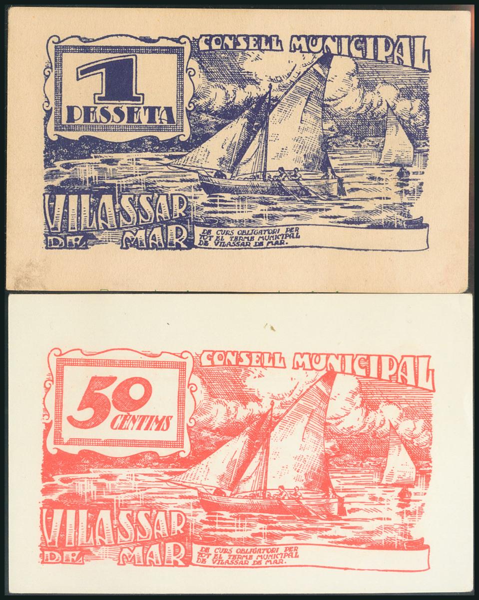 VILASSAR DE MAR (BARCELONA). 50 Cents and 1 Peseta. (1937ca). (González: 10866/67). Rare complete series in this quality. UNC/ AU.