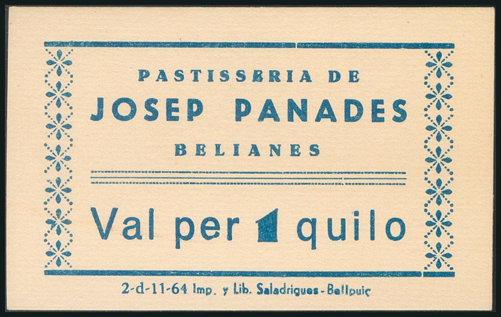 It is worth 1 Kilo from the Josep Panades pastry shop, from Belianes, from Lérida. UNC.