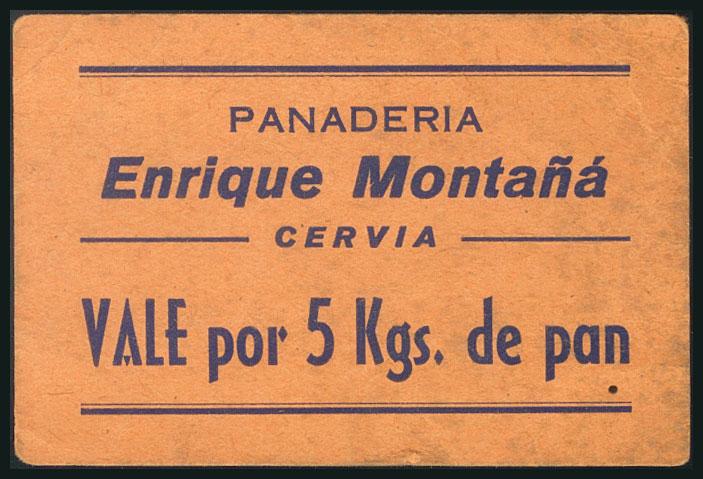 Voucher of 5 kilos of bread from Enrique Montañá's bakery, from Cerviá, from Lérida. VF.