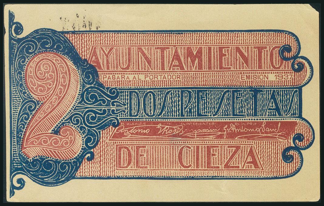 CIEZA (MURCIA). 2 Pesetas. (1938ca). Series A. (González: 1963). Rare. XF.