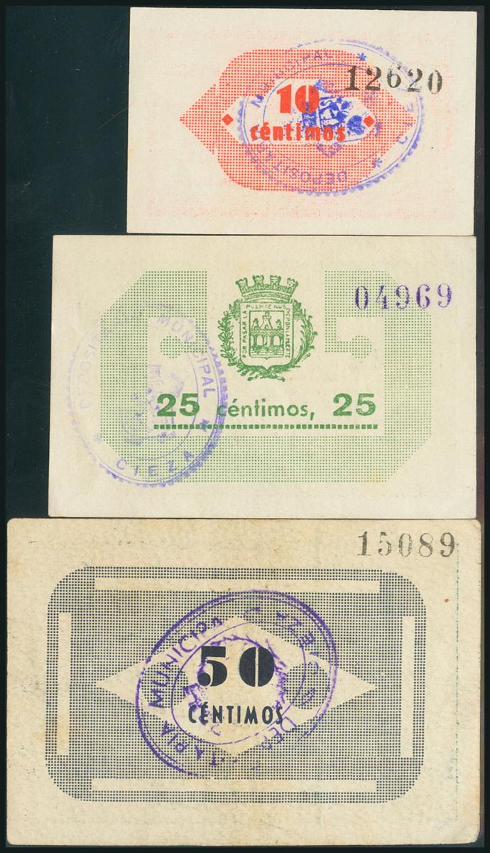 CIEZA (MURCIA). 10 Cents, 25 Cents and 50 Cents. 1937. (González: 1964/66). Unusual complete series. AU.
