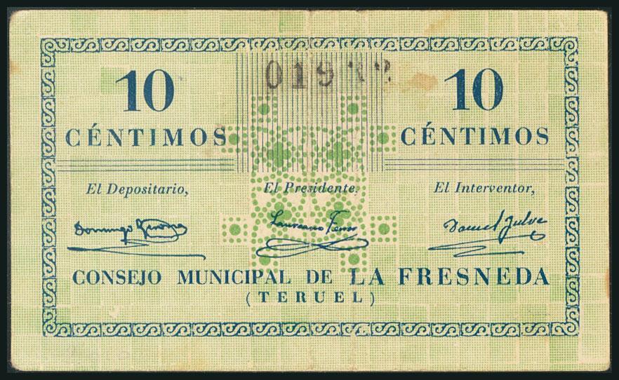 LA FRESNEDA (TERUEL). 10 cents. (1938ca). (González: 2530). Very rare. VF.