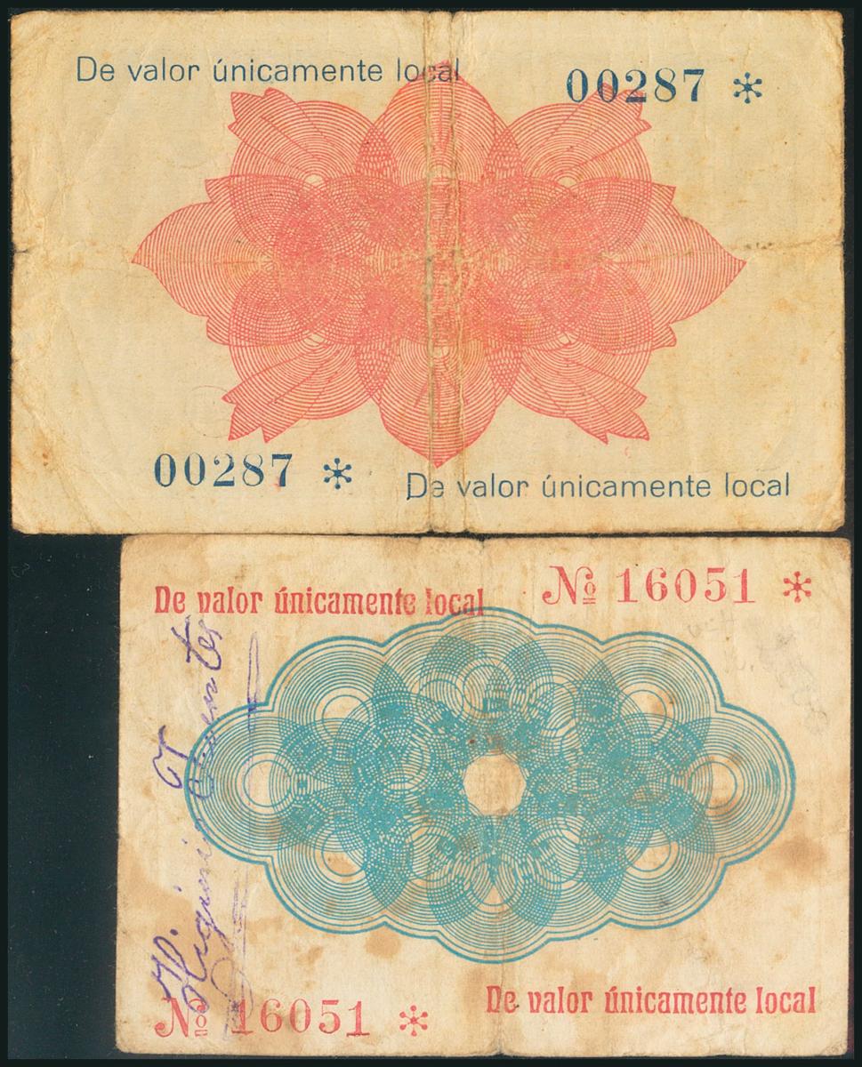 MADRIGUERAS (ALBACETE). 25 Cents and 1 Peseta. (1937ca). (González: 3309/10). Rare complete series. F.