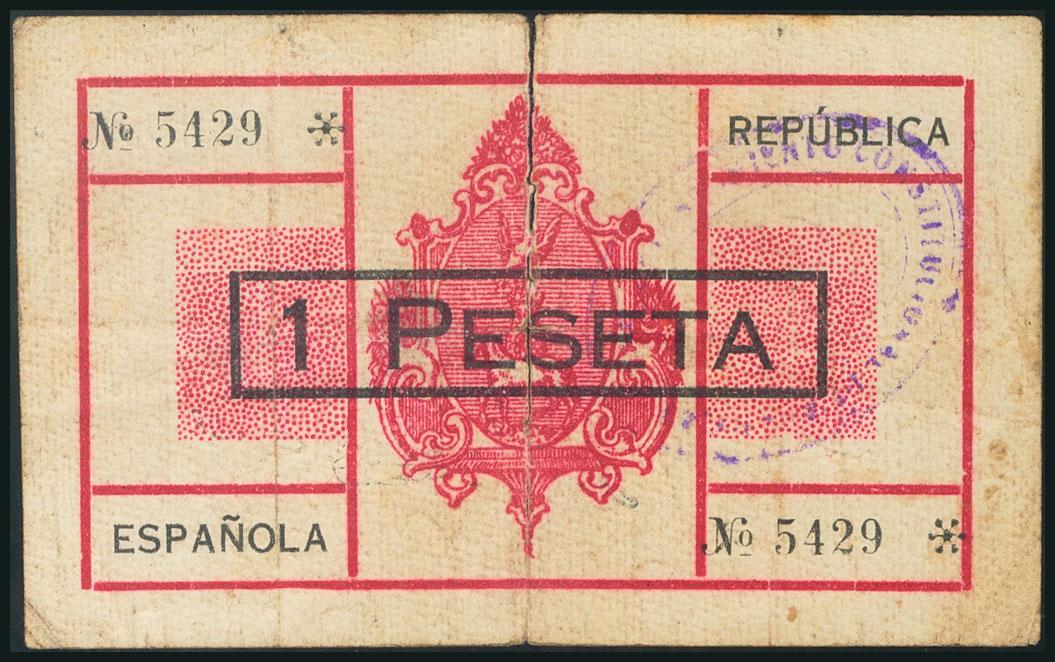 MULA (MURCIA). 1 peseta. February 1937. (González: 3756). Rare. VG.