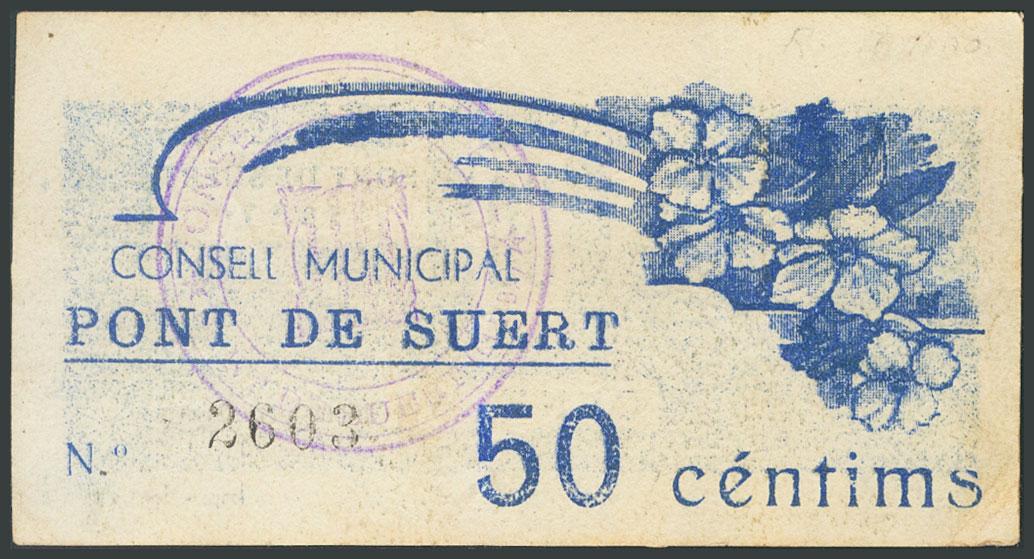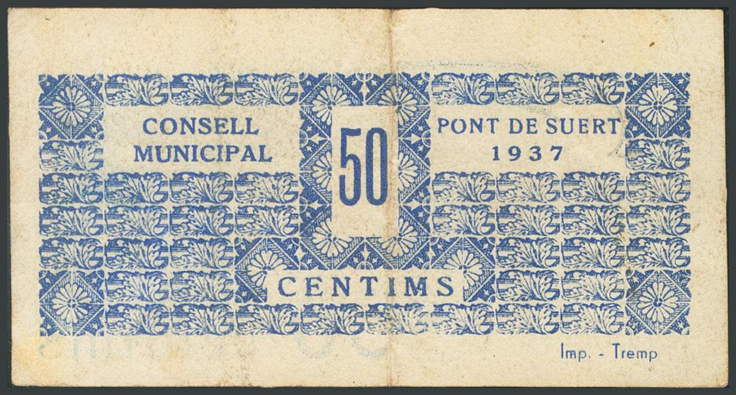 PONT DE SUERT (LERIDA). 50 Cents. 1937. (González: 9383). Weird. VF.