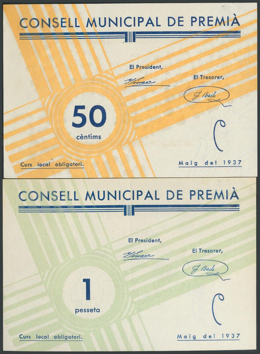 50 Cents and 1 Peseta. May 1937. Series B and A, respectively. (González: 9454/55). Unusual complete series. AU.