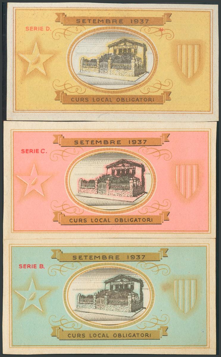 PREMIA DE MAR (BARCELONA). 25 Cents, 50 Cents and 1 Peseta. September 1937. Series D, C and B, respectively and without numbering. (González: 9468, 9469, 9470). UNC/ AU.