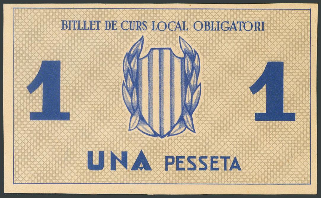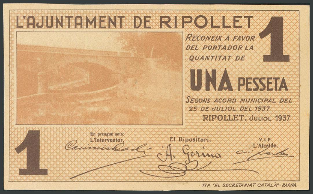 RIPOLLET (BARCELONA). 1 peseta. July 25, 1937. Unnumbered. (González: 9668). UNC.