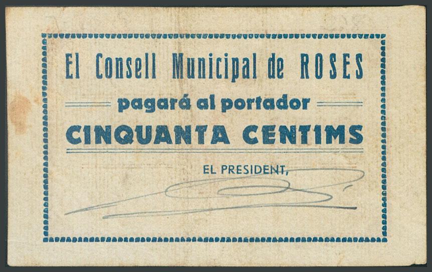 English ROSES (GERONA). 50 Cents. (1937ca). (González: 9747). VF.