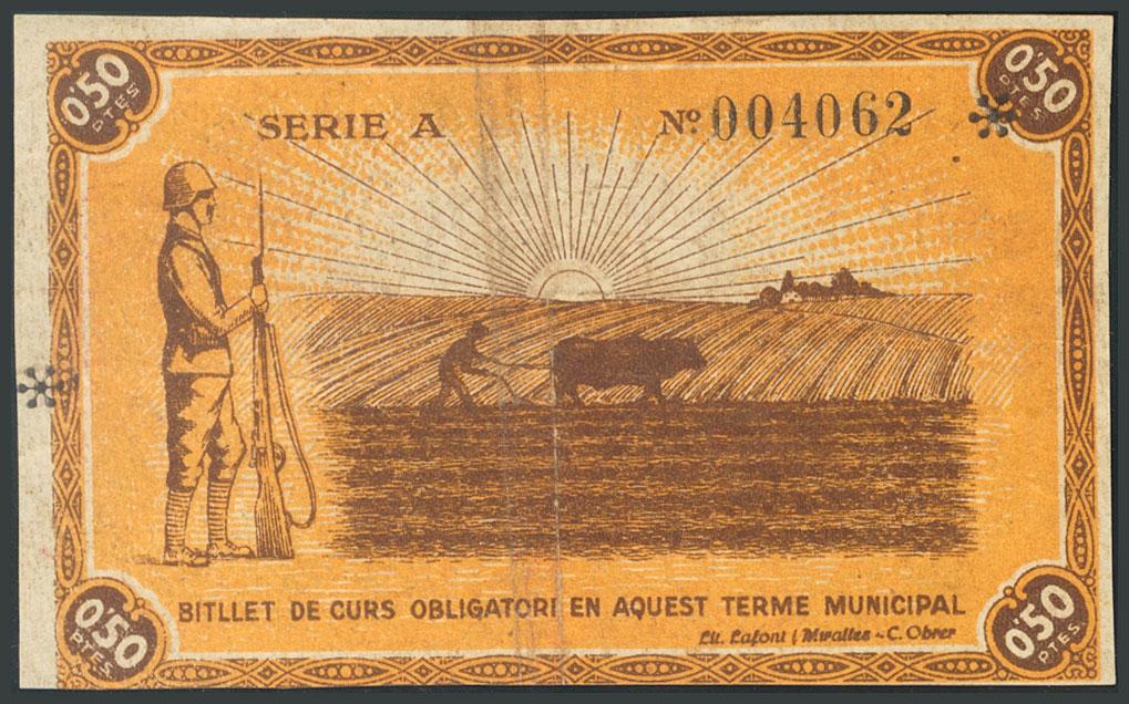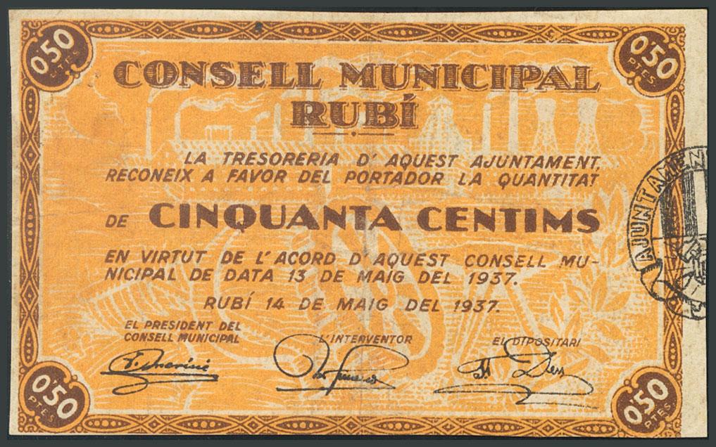 RUBI (BARCELONA). 50 Cents. May 13, 1937. (González: 9759). VF.