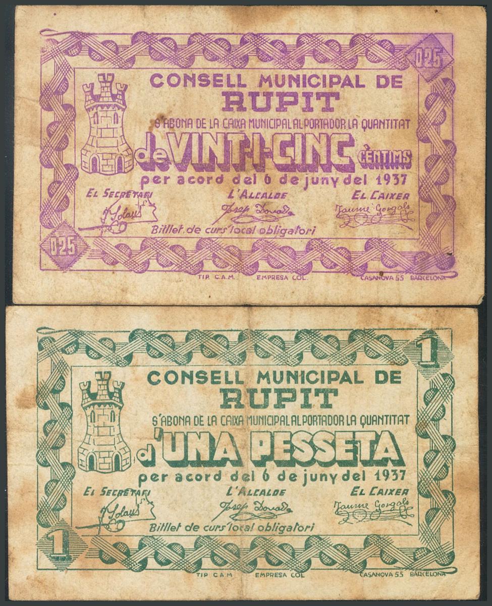RUPIT (BARCELONA). June 1937. (González: 9774/75). Rare complete series. BC +.