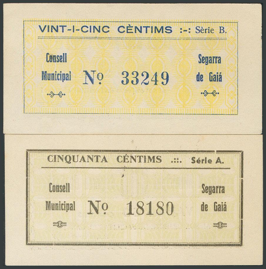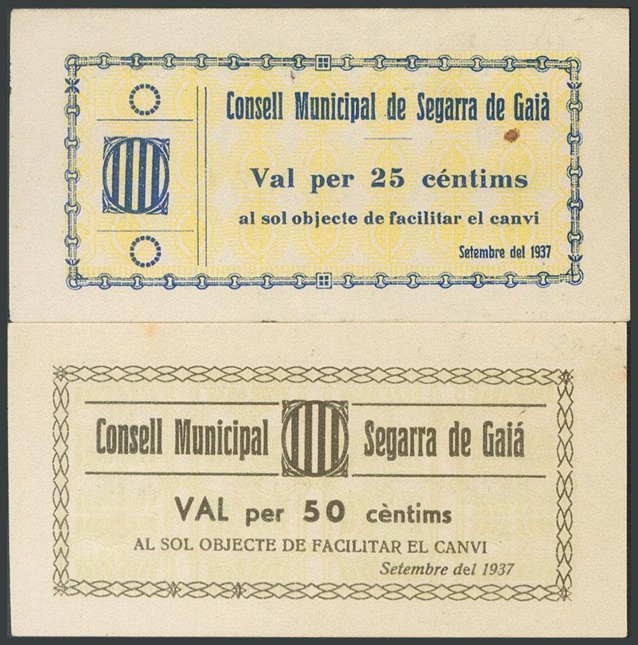 SEGARRA DE GAIA (TARRAGONA). 25 Cents and 50 Cents. September 1937. (González: 9911/12). Unusual complete series. UNC.