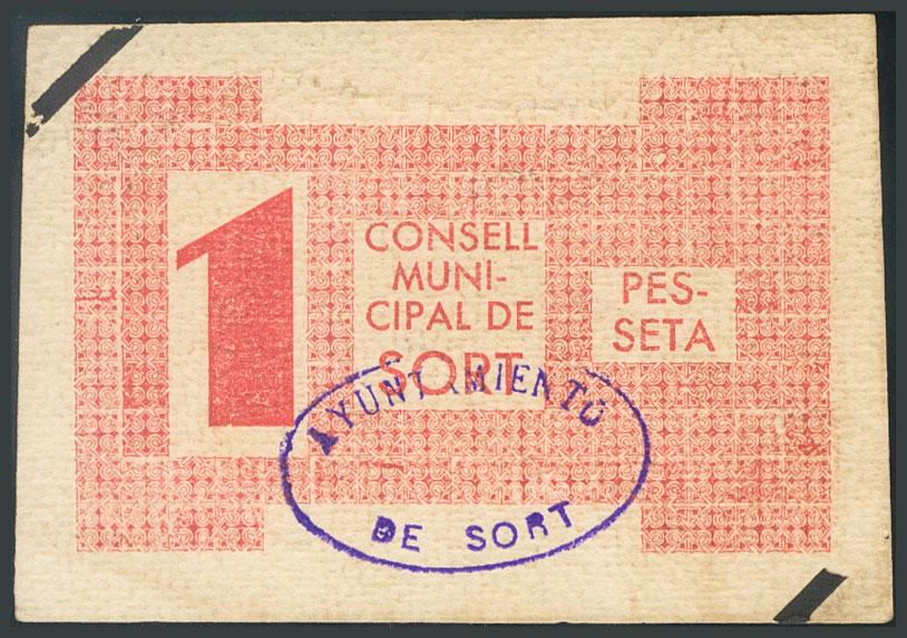 SORT (LERIDA). 1 peseta. 1937. (González: 10043). Weird. AU.