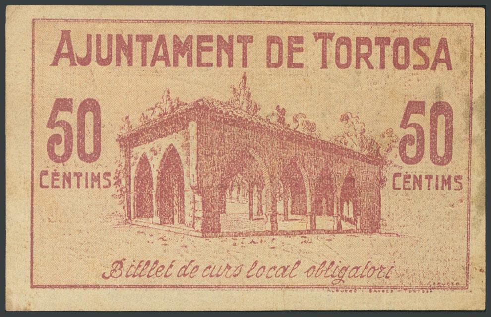 English TORTOSA (TARRAGONA). 50 Cents. November 9, 1937. (González: 10441). VF.