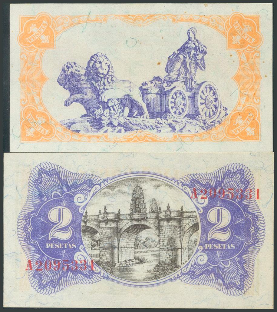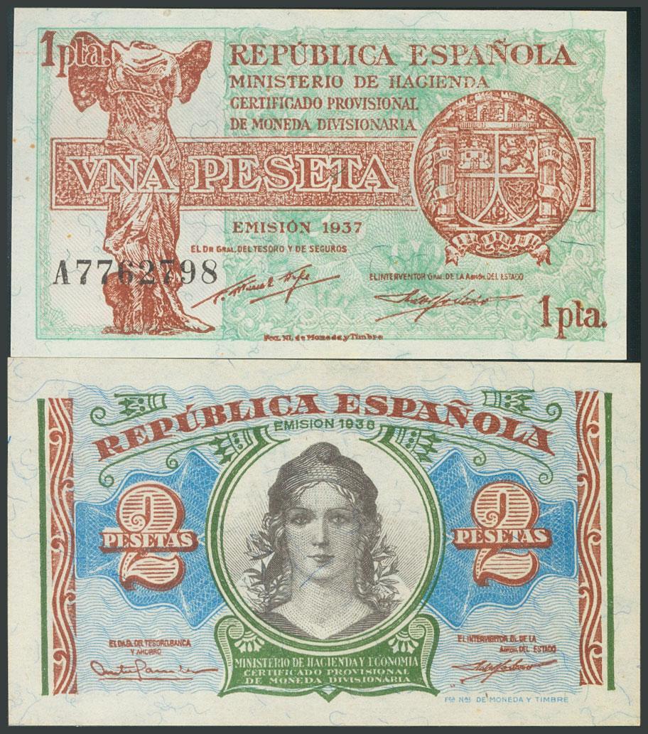 1 Peseta and 2 Pesetas. 1937. Series A, both. (Edifil 2017: 391, 392). The 1 Peseta with little rust spots. UNC/ AU.