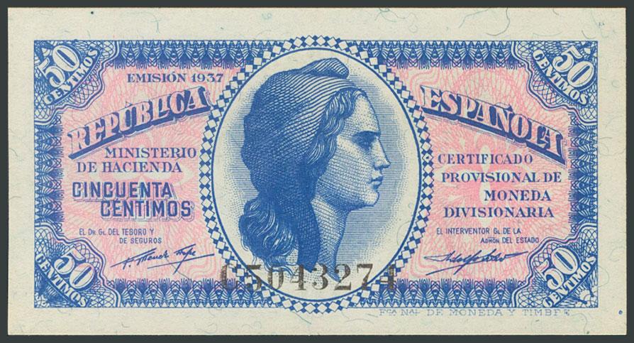 50 Cents. 1937. Series C, last series issued. (Edifil 2017: 391a). UNC.