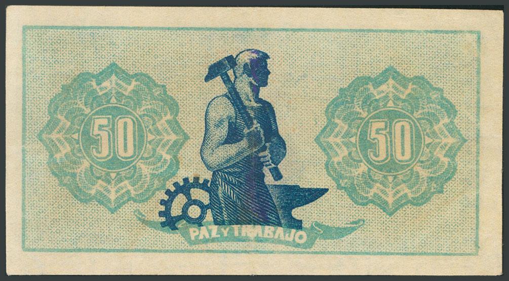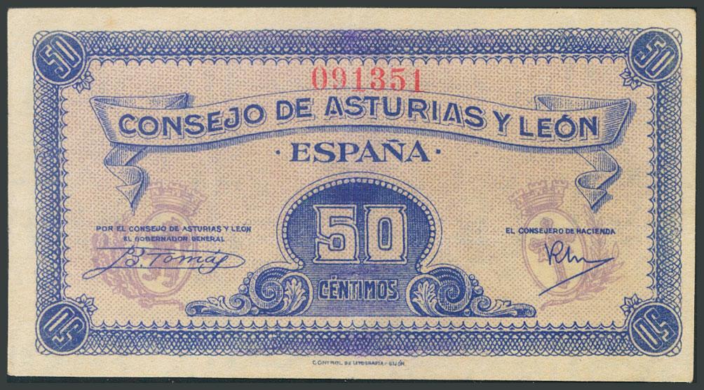 50 Cents. 1937. Council of Asturias and León. No serie. (Edifil 2017: 396). It retains part of the original size. AU.