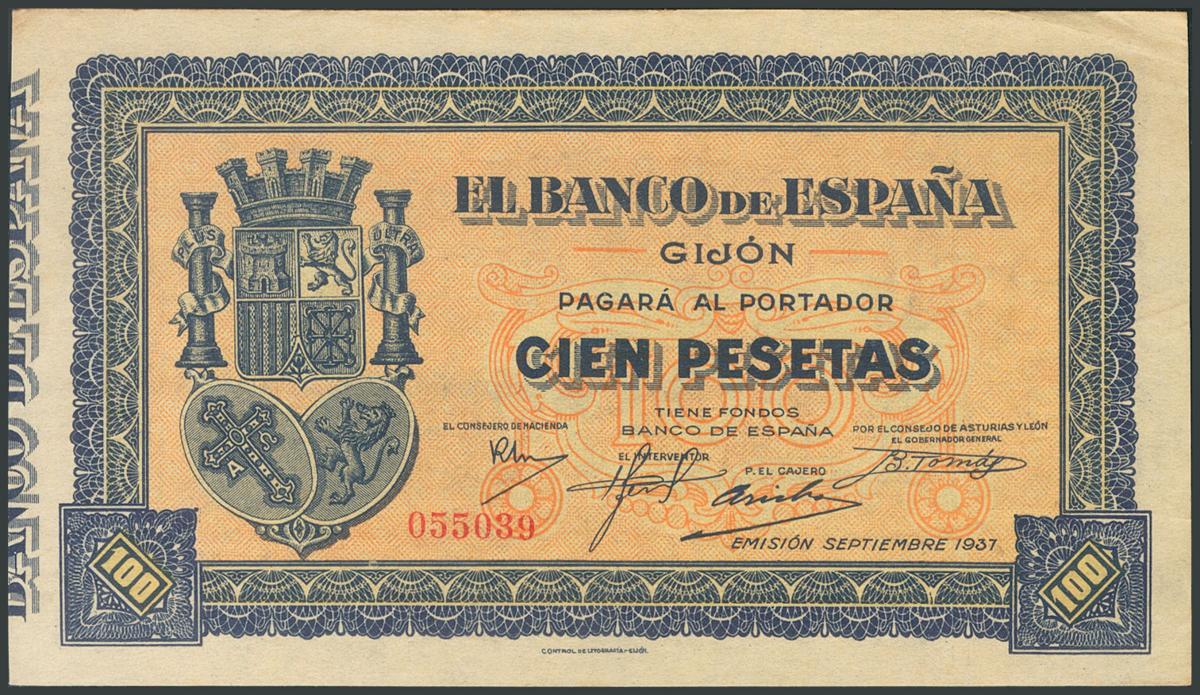100 Pesetas. September 1937. Without series. (Edifil 2017: 399). AU.