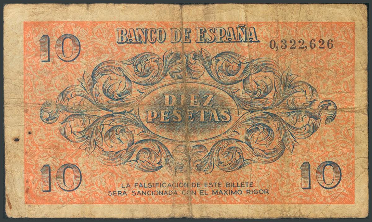 10 pesetas. November 21, 1936. Without series. (Edifil 2017: 418). Unusual AG3.