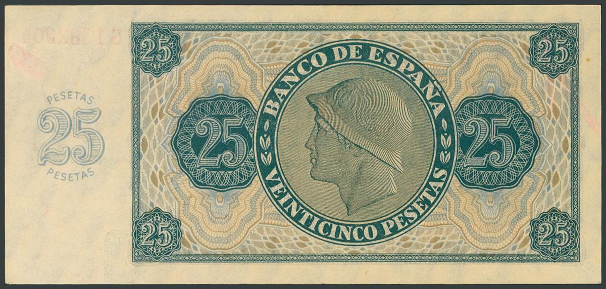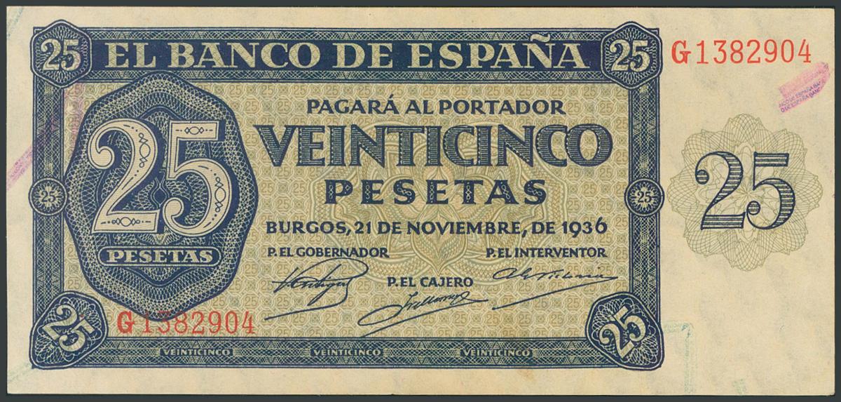 25 Pesetas. November 21, 1936. Series G. (Edifil 2017: 419a). Original sizing. UNC.