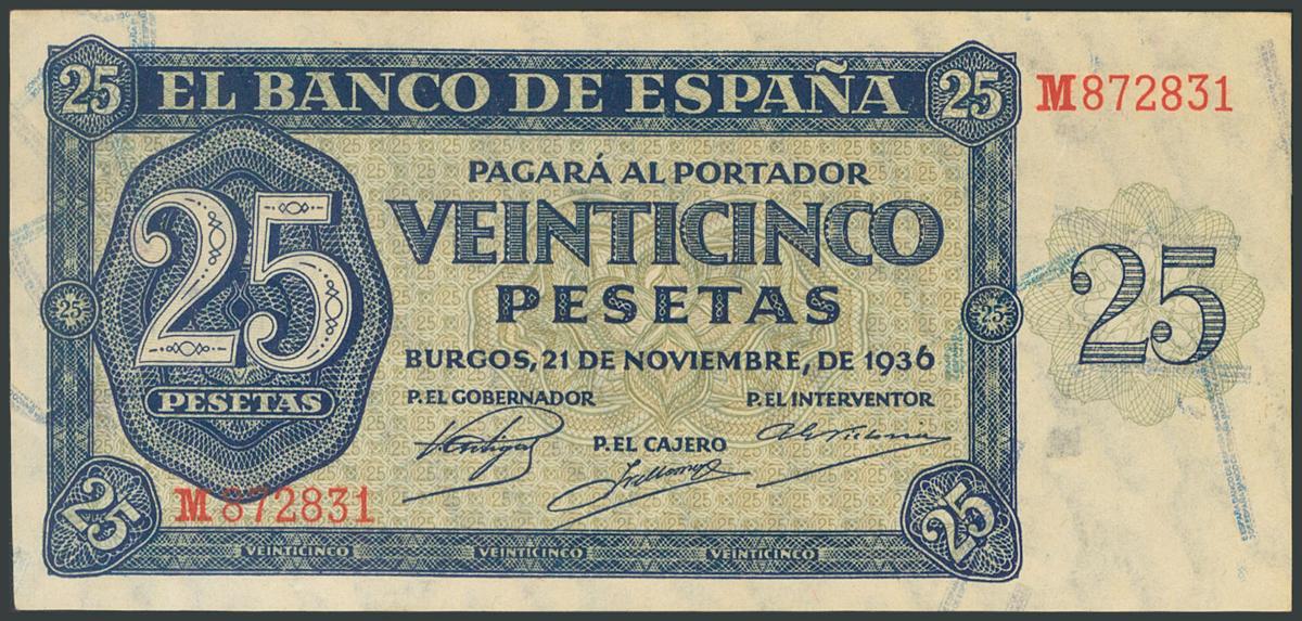 25 Pesetas. November 21, 1936. Series M. (Edifil 2017: 419a). UNC.