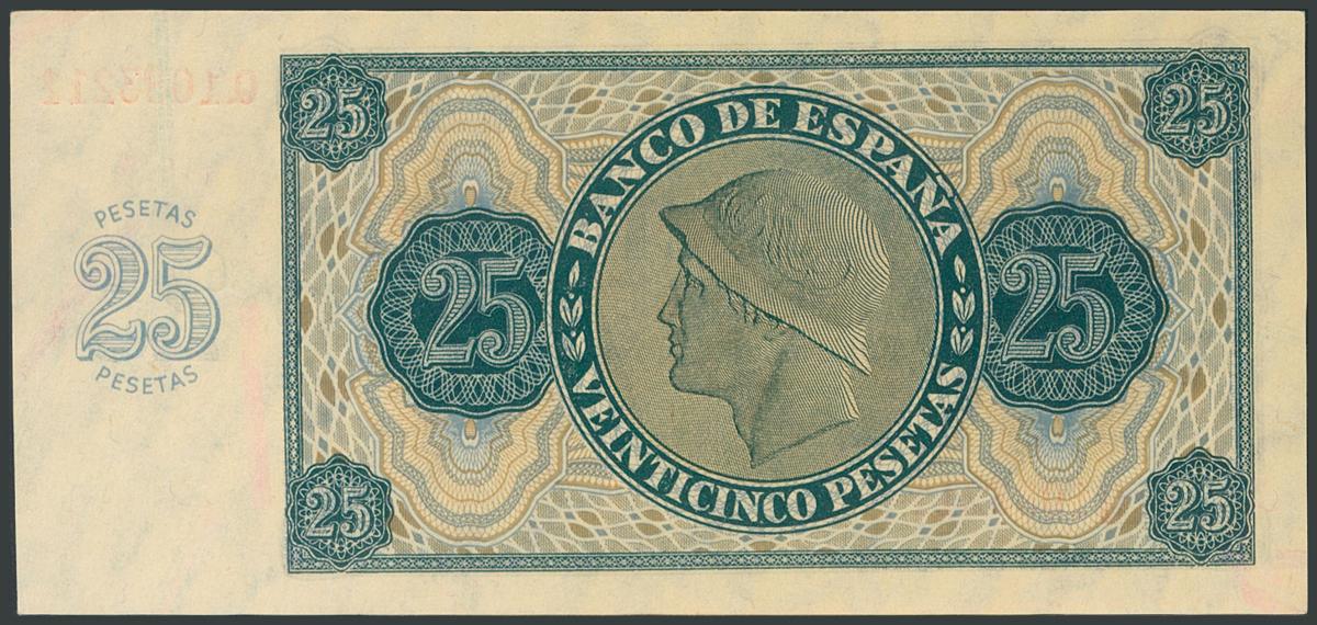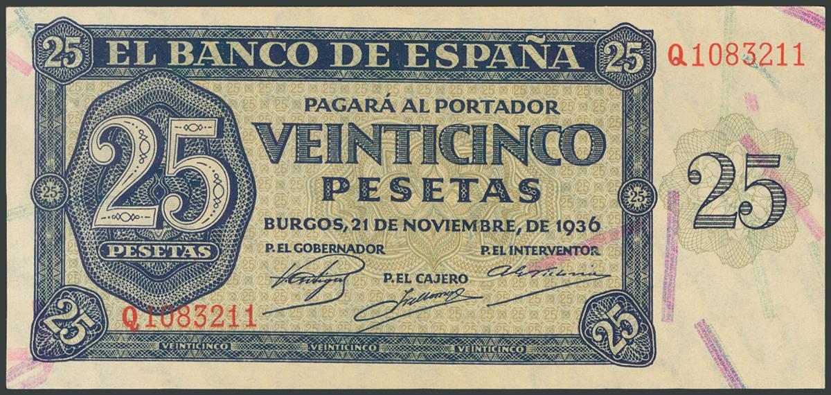 25 Pesetas. November 21, 1936. Series Q. (Edifil 2017: 419a). Original sizing. UNC.