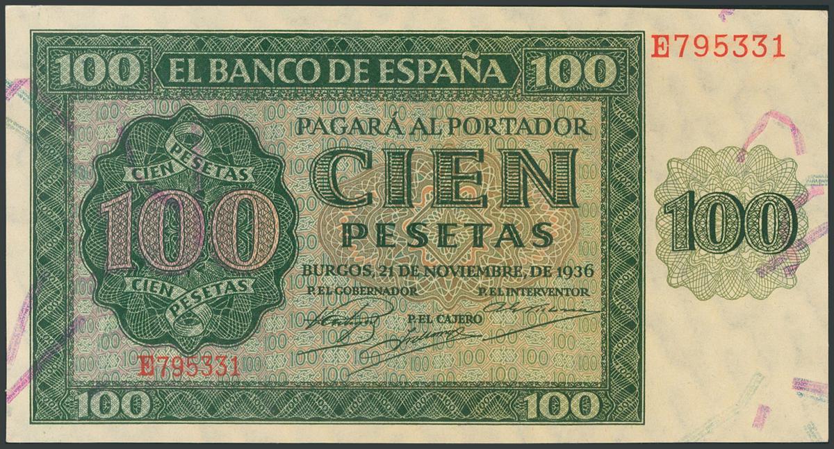 100 Pesetas. November 21, 1936. Series E. (Edifil 2017: 421a). Original sizing. UNC.
