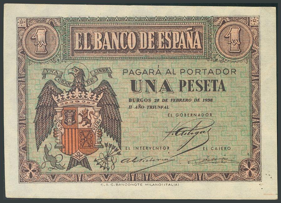 1 peseta. February 28, 1938. Series F. (Edifil 2017: 427a). It preserves a large part of the original size. AU.