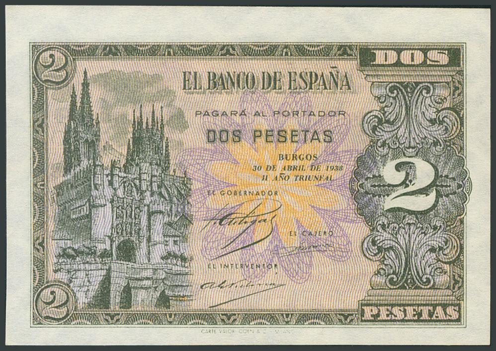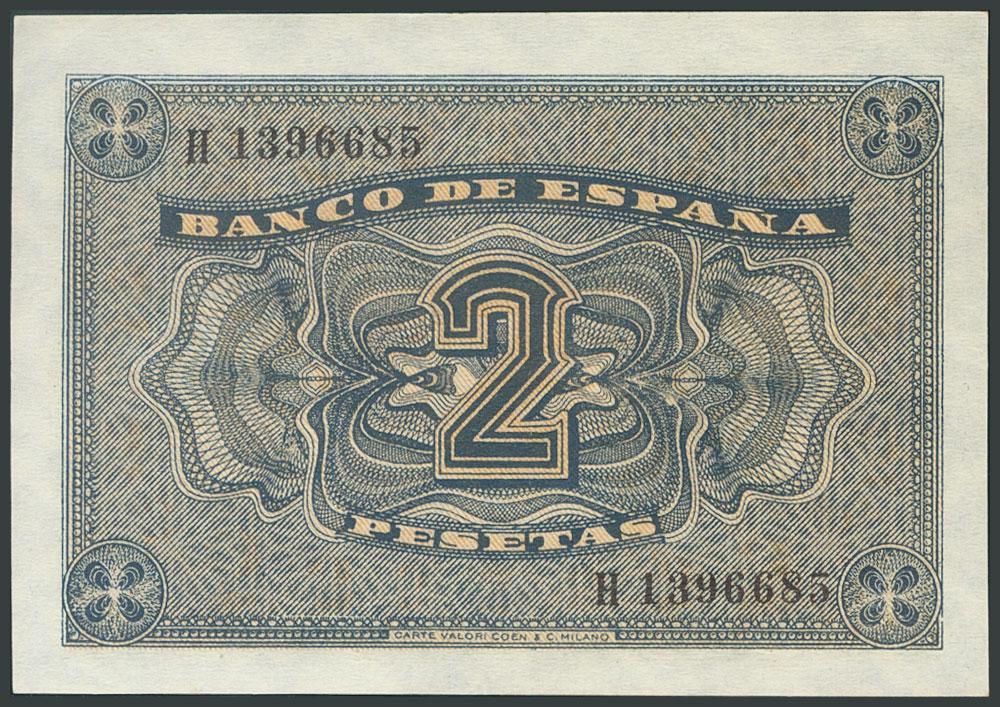 2 Pesetas. April 30, 1938. Series H. (Edifil 2017: 429a). Original sizing. UNC.