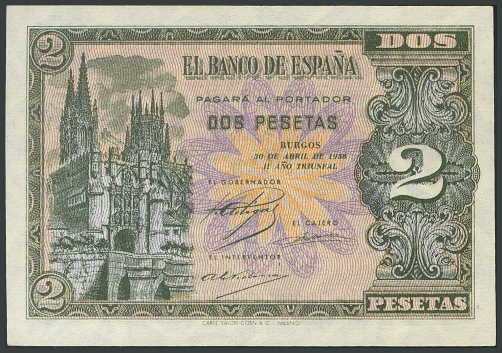 2 Pesetas. April 30, 1938. Series M. (Edifil 2017: 429a). Original sizing. UNC.