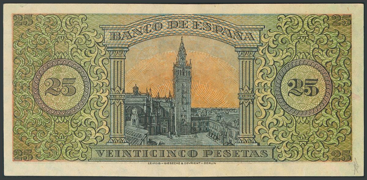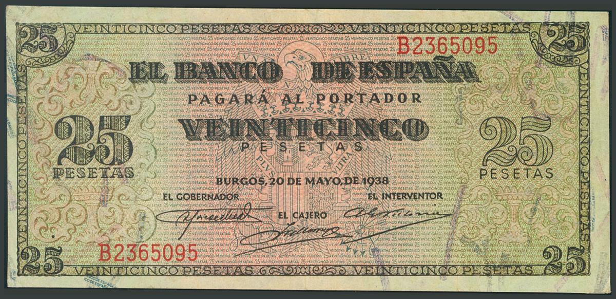 25 Pesetas. May 20, 1938. Series B. (Edifil 2017: 430a). AU.