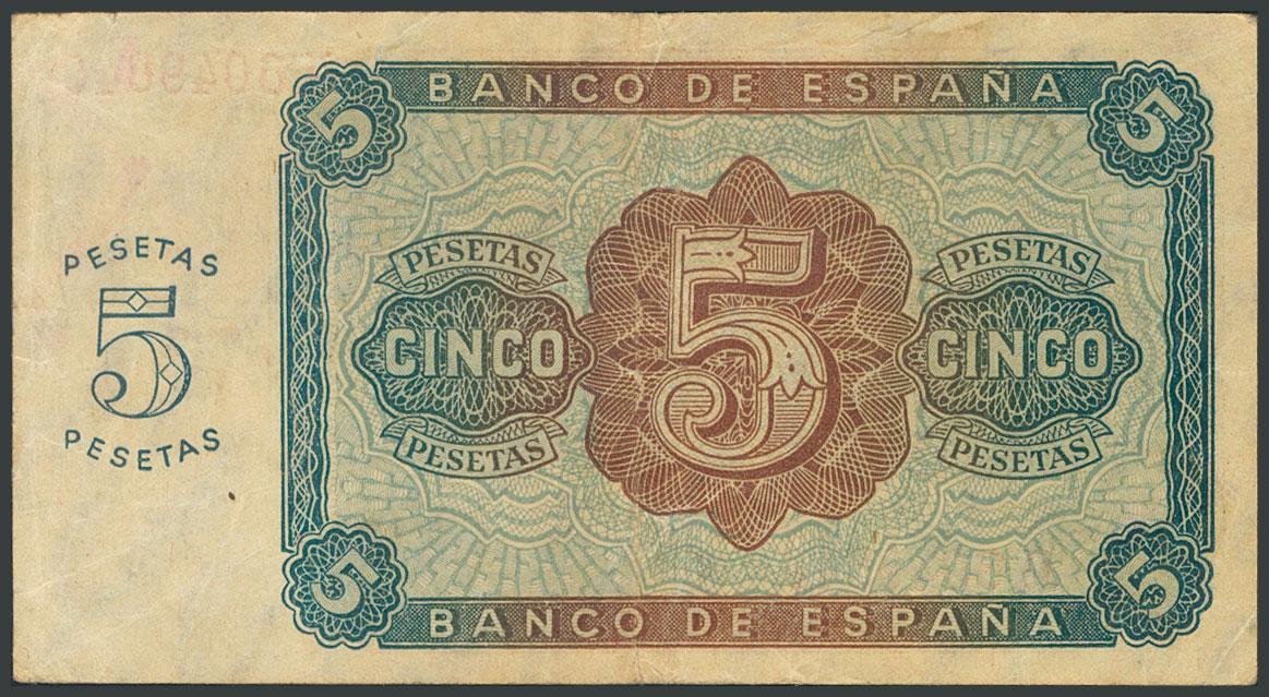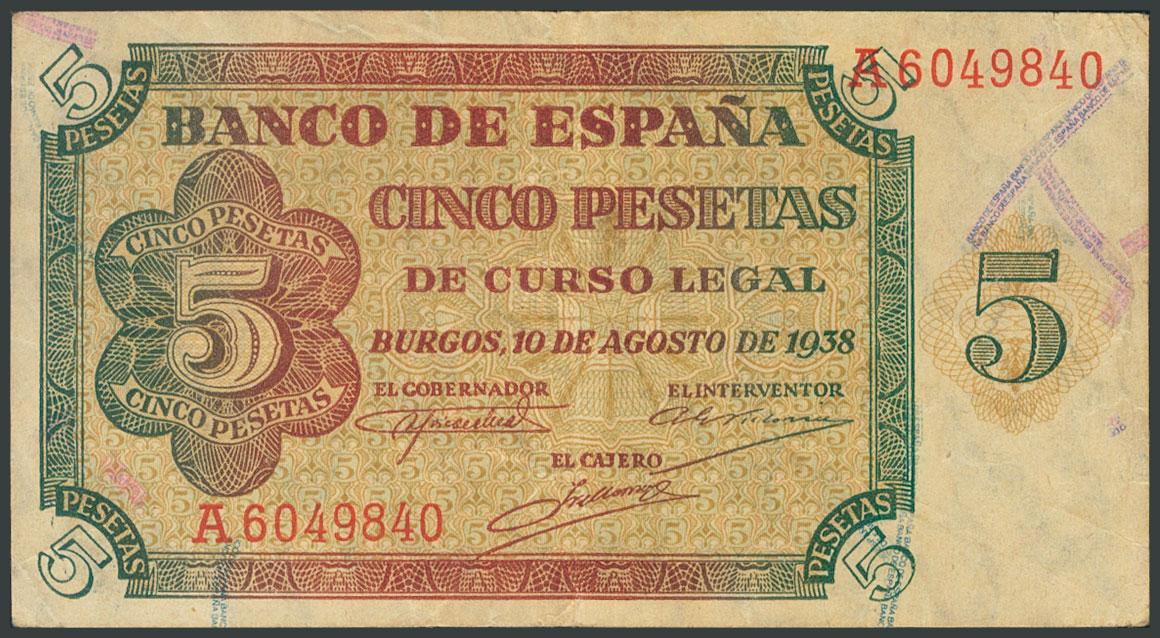 5 Pesetas. August 10, 1938. Series A. (Edifil 2017: 435). VF.