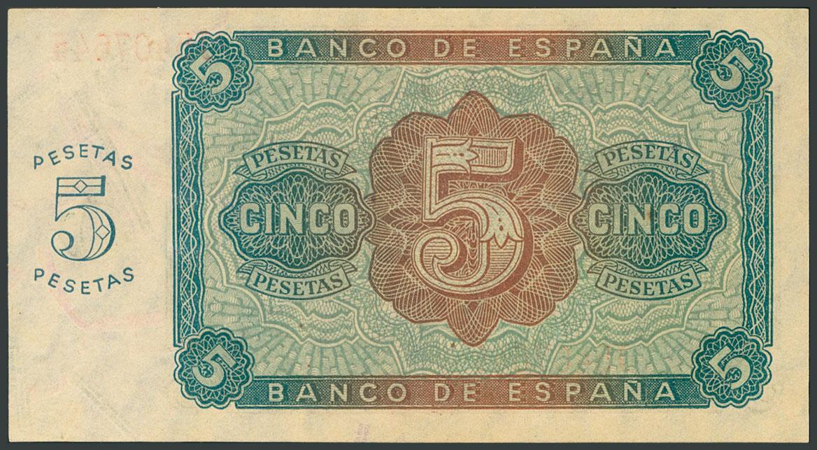 5 Pesetas. August 10, 1938. Series J. (Edifil 2017: 435a). Original sizing. UNC.