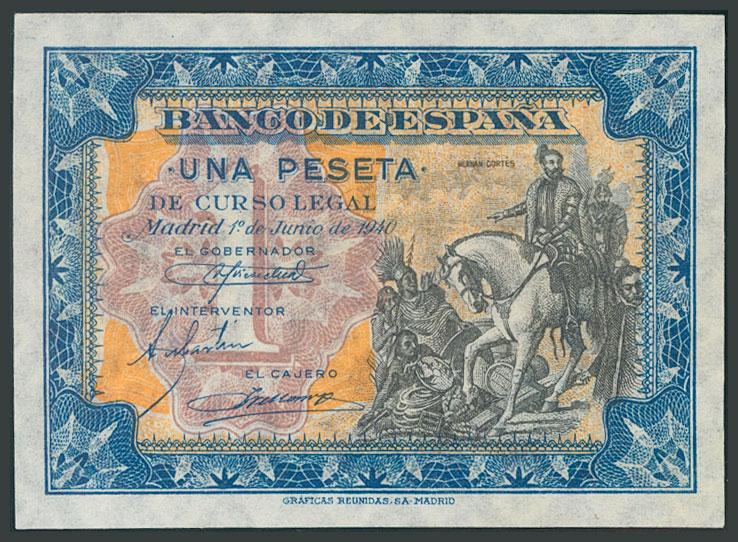 1 peseta. June 1, 1940. Series A. (Edifil 2017: 441a). Original sizing. AU.