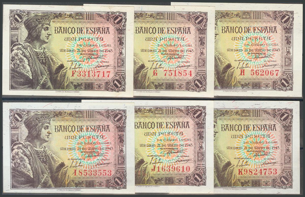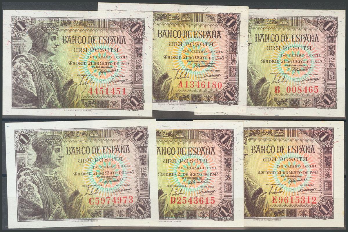 English Beautiful and very interesting set of 15 1 Peseta banknotes issued on May 21, 1943 and including all known series and the one without series (A, B, C, D, E, F, G, H, I, J, K , L, M and N) (Edifil 2017: 447, 447a). Rare set and of good quality, all the banknotes are fully prepared (the set must be considered for all intents and purposes of the highest quality, especially in such a set, it is possible that there will be at most two banknotes in UNC quality and not so even that but we prefer to opt for prudence, in our opinion it is absolutely despicable). UNC/ UNC.